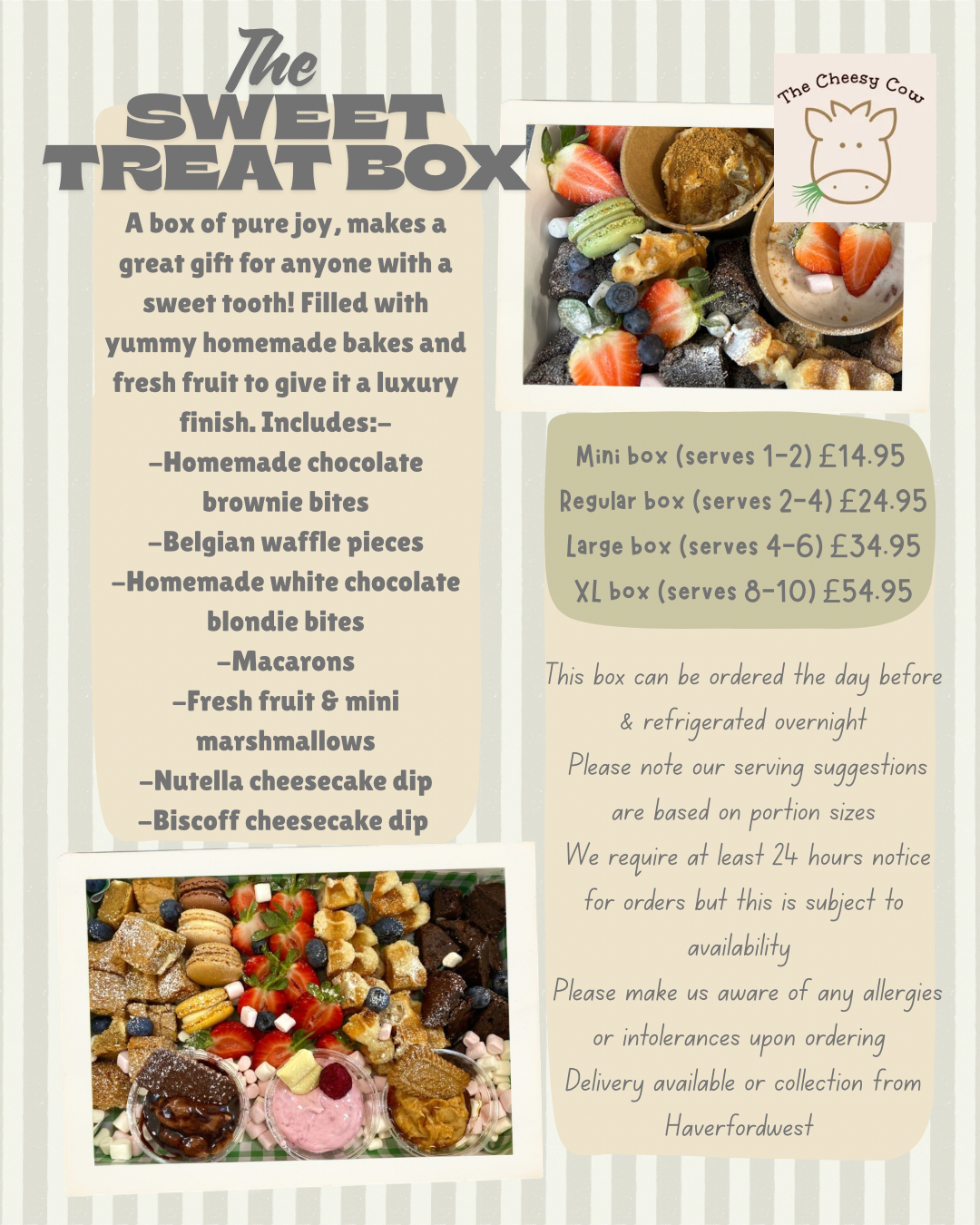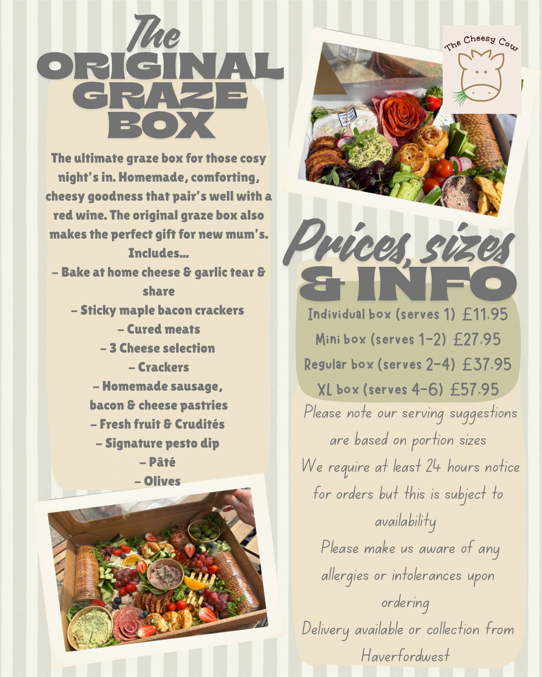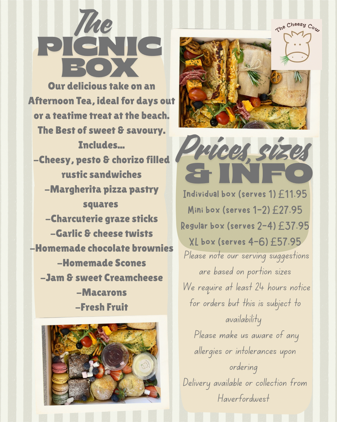 Contact us at 01646 697265 or thecheesycow@hotmail.com to place your order. Pre-ordering is recommended to secure your preferred collection time.