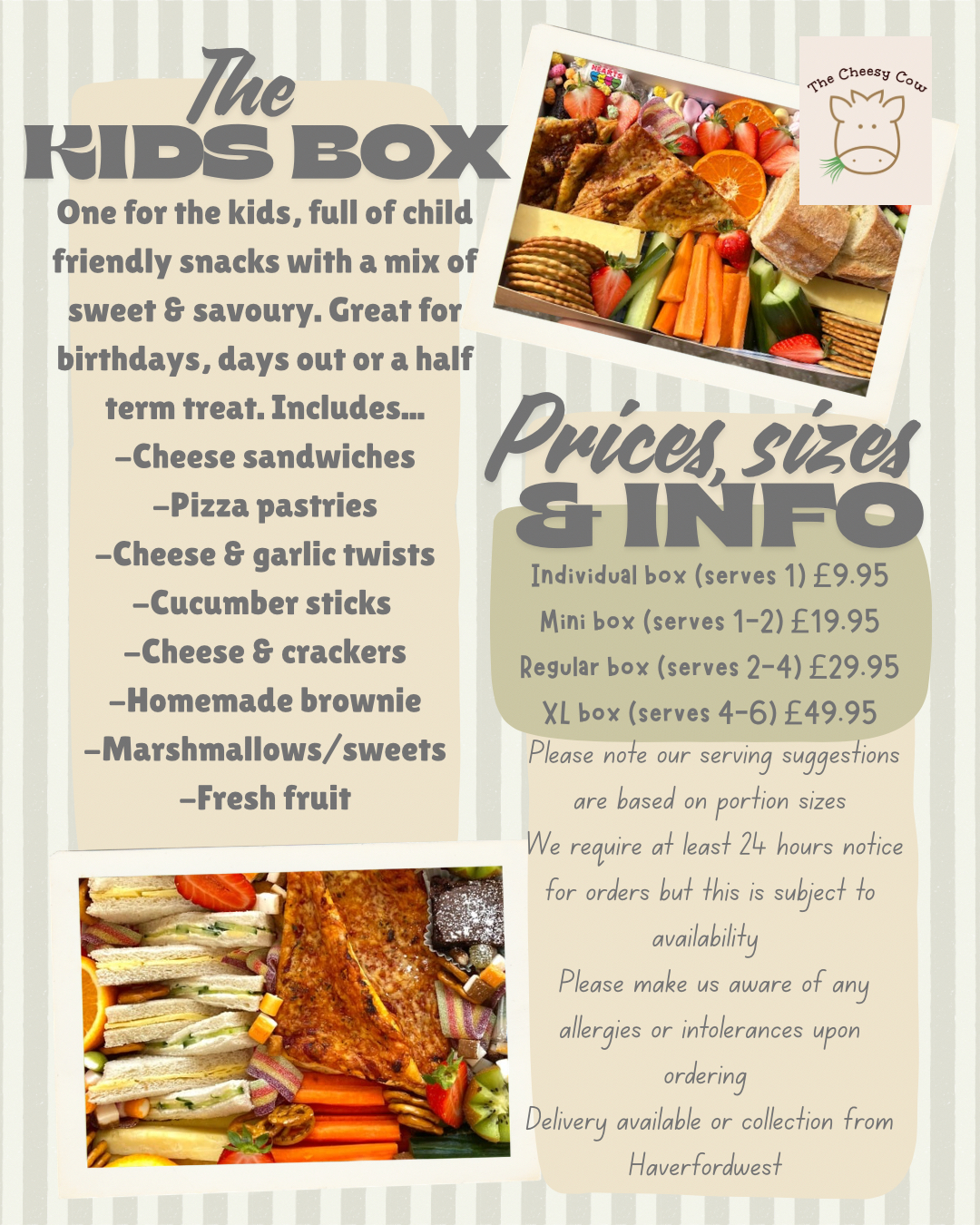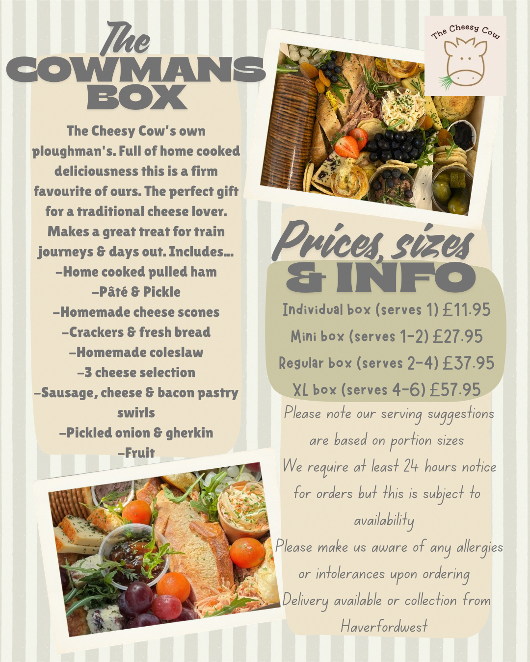 Contact us at 01646 697265 or thecheesycow@hotmail.com to place your order. Pre-ordering is recommended to secure your preferred collection time.